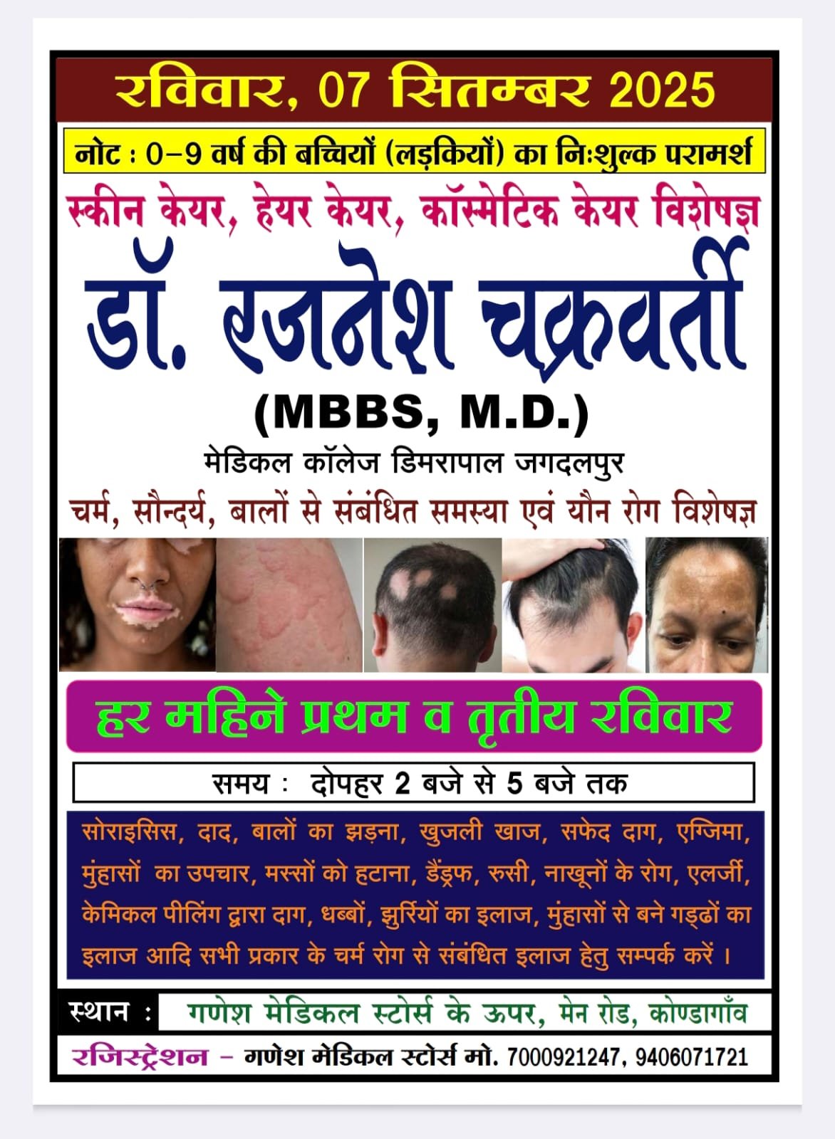कोंडागांव में डॉ. रजनेश चक्रवर्ती देंगे त्वचा रोगों का परामर्श