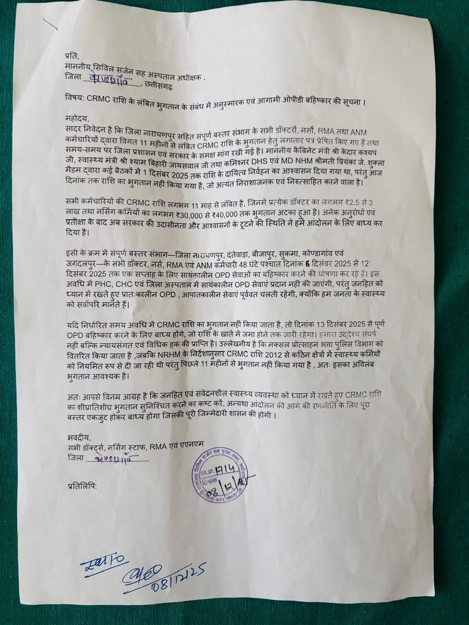 बस्तर में स्वास्थ्य आपातकाल: 12 महीने से CRMC नहीं मिला; डॉक्टर हड़ताल पर, OPD ठप्प, मरीज़ों की साँसें अटकीं